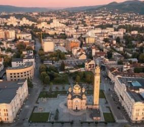 Sarajevo, capital of Bosnia and Herzegovina, is a compact city on the Miljacka River, surrounded by the Dinaric Alps.