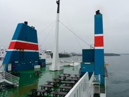 We set off in the afternoon, having a brief sleep at a motorway srevice station just before the Polish border. The overnight ferry left early evening, so we had an evening meal and breakfast on board, and slept well in a 2-berth pet-friendly cabin.