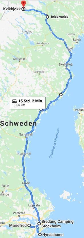 We visited Gripsholms Slot, Mariefred on the way to Stockholm, where we picked up Fiona & Becky and spent a couple of days at Bredang Camping, a short ferry ride or train ride from Stockholm. From Stockholm we headed for Lapland: first stops were Jokkmokk and Kvikjokk, on the Kongsleden long-distance walk. Highlight for me was the remote Rapadalan, a breathtakingly beautiful valley only reachable by a longish walk or bike-ride, which turned out to be much more strenuous than predicted by komoot: it took me over 6 hours, rather than the expected 3.5! Link to Tour