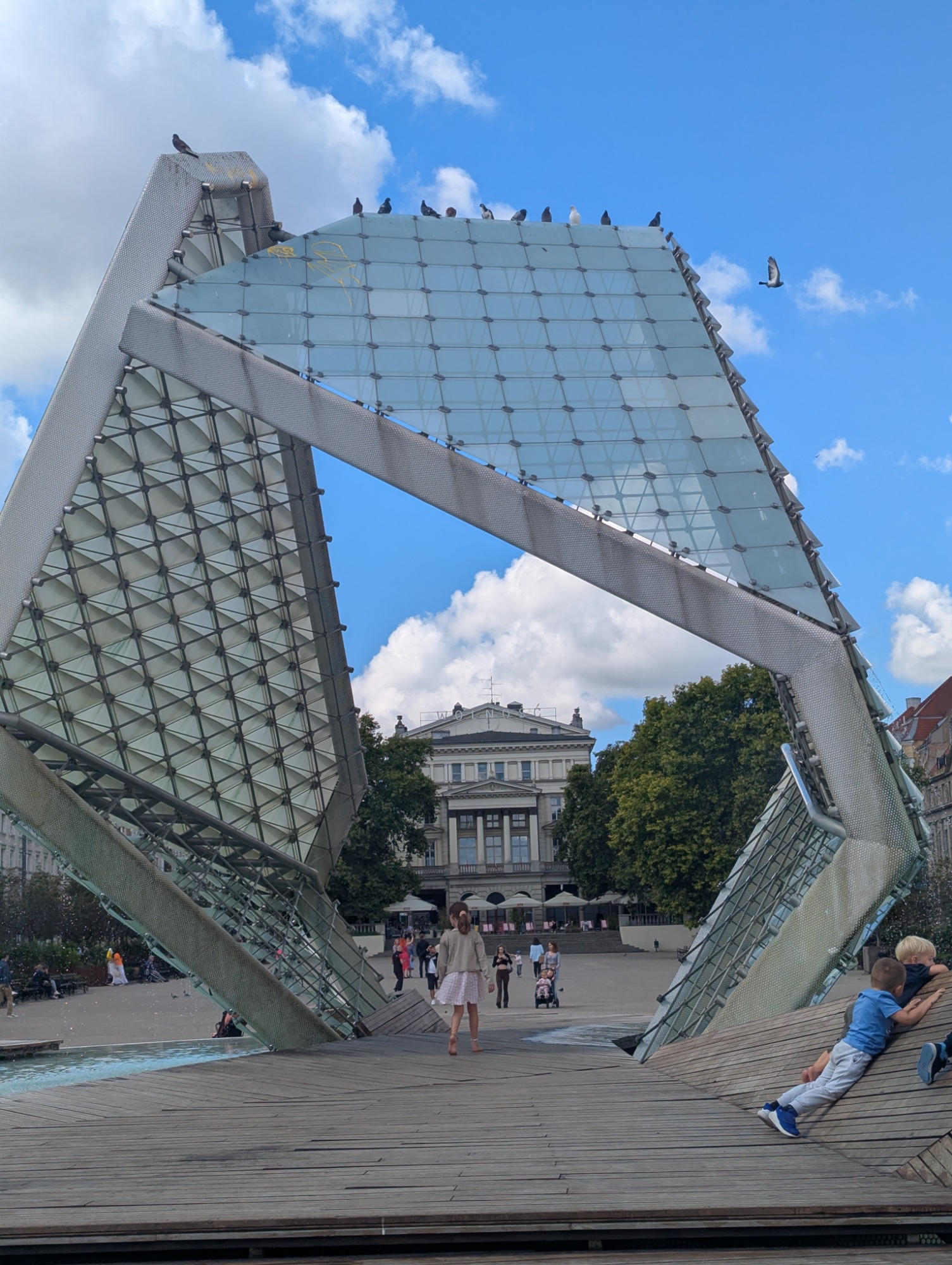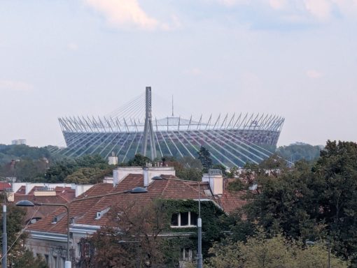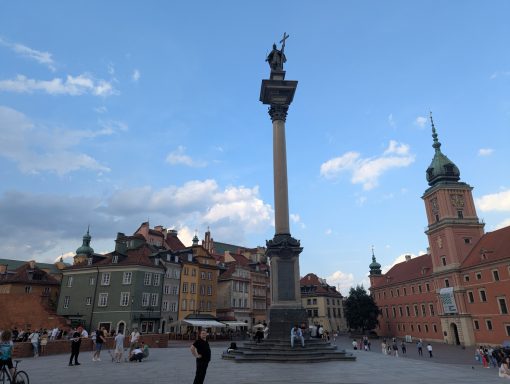 Warsaw is a big, busy, bustling capital city. We parked on a park&ride at the end of the metro (Mlociny), but took a tram into town. We parked right next to the tram terminal, which was conveniant but very loud. We got off the tram at the central train station, then took a bus to the old town, wandered through the old town and the new town, before walking down the steps to the river and catching a bus back to the p&r. In the evening we wandered round the huge Mlociny Galerie shopping centre, eating at the food court.