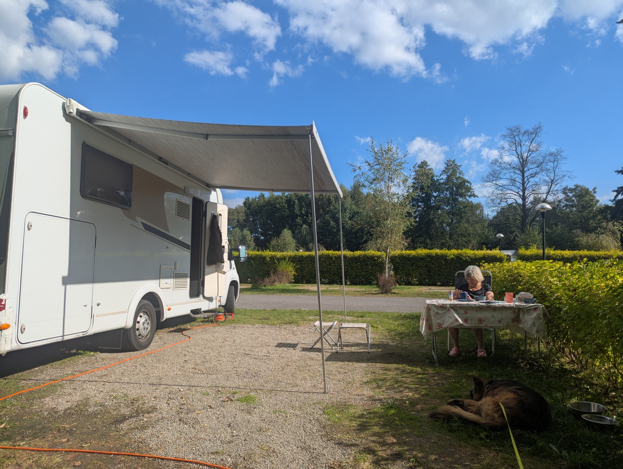 Camping 215 is next to a lake, close to the motorway with 150 pisches and restaurants near by.