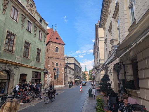 officially the Royal Capital City of Kraków is the second-largest and one of the oldest cities in Poland. Situated on the Vistula River in Lesser Poland Voivodeship, the city has a population of 804,237 (2023). We stayed at 17 Biskupia, an uneven parking lot 2 minutes walk from the old town, reasonably priced (€19/24hrs) and quiet at noght.